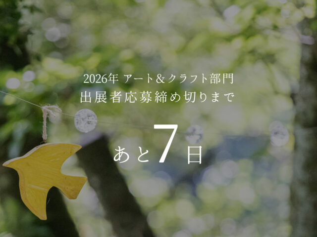 お知らせ アート&クラフト部門出展者募集、本日締め切り最終日です! 2026.01.31 お知らせ アート&クラフト部門出展者募集の締め切りまであと1日です! 2026.01.30 お知らせ アート&クラフト部門出展者募集の締め切りまであと2日です! 2026.01.29 お知らせ アート&クラフト部門出展者募集の締め切りまであと3日です! 2026.01.28 お知らせ アート&クラフト部門出展者募集の締め切りまであと4日です! 2026.01.27 お知らせ アート&クラフト部門出展者募集の締め切りまであと5日です! 2026.01.26 お知らせ アート&クラフト部門出展者募集の締め切りまであと6日です! 2026.01.25 お知らせ アート&クラフト部門出展者募集の締め切りまであと1週間です! 2026.01.24 お知らせ アート&クラフト部門の選考委員をご紹介します vol.02 2026.01.12 お知らせ アート&クラフト部門の選考委員をご紹介します vol.01 2026.01.11 お知らせ 1月10日(土)よりアート&クラフト部門の応募受付を開始しました 2026.01.10 お知らせ 「てしごとon the street」の出展者募集、始まりました 2025.12.09 1 2 3 … 183 次へ »